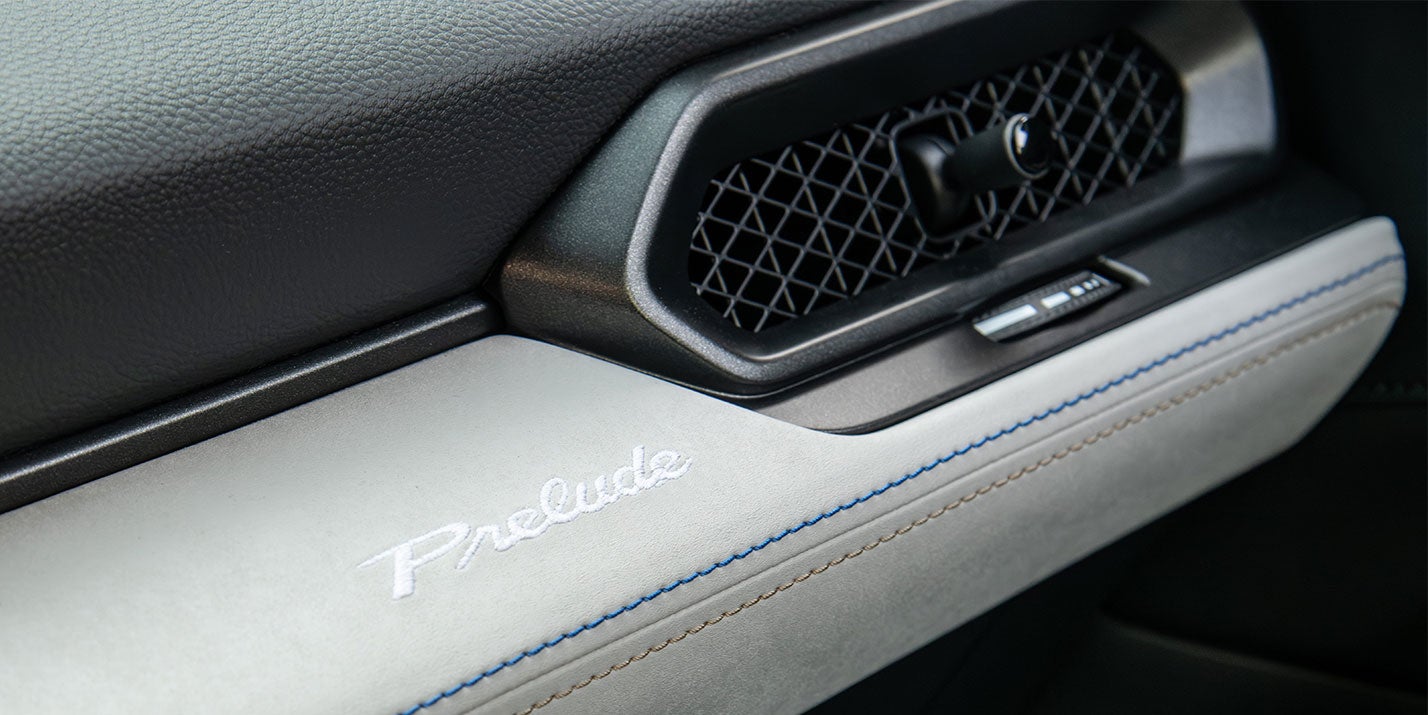 Integra cancelación Activa de Ruido (ANC) y Control Activo de Sonido (ASC). Los asientos deportivos delanteros premium de Honda Prelude cuentan con cuero suave al tacto, pedales deportivos; ambientado con luz interior blanca y costuras azules de alto contraste.